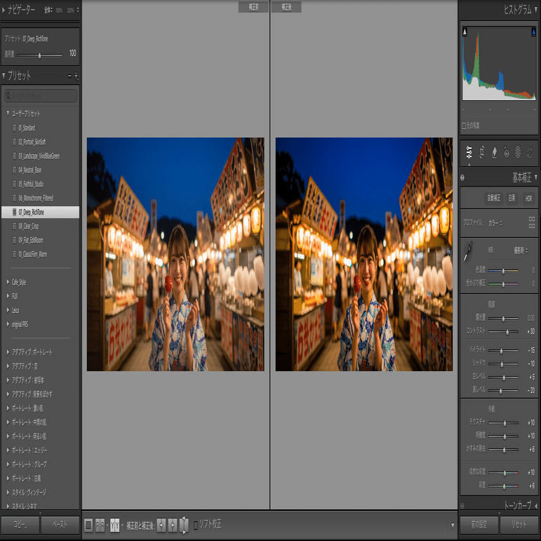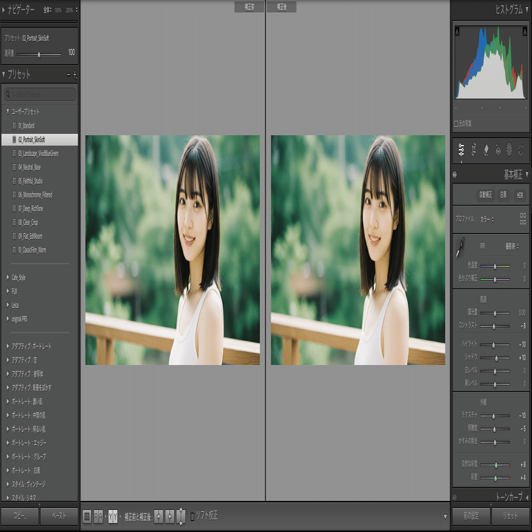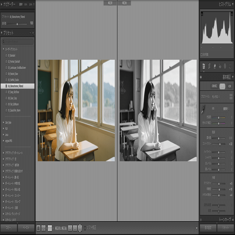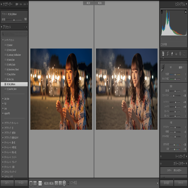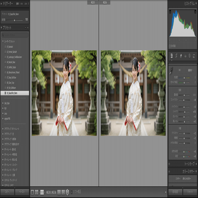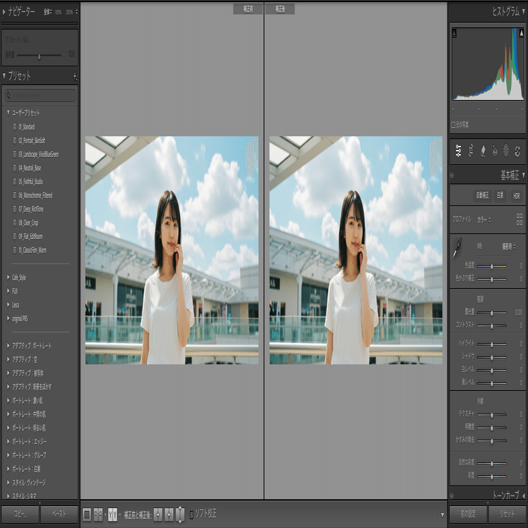✨ ポイント:プリセットを当てた後、露出や明るさを少し調整するとさらに自然に仕上がります。