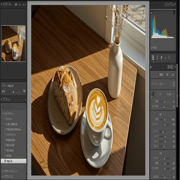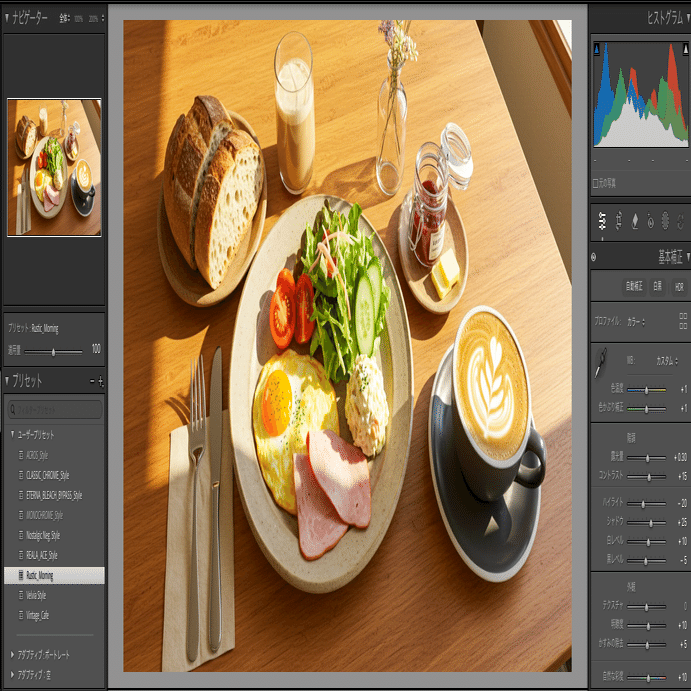 朝のカフェの雰囲気の撮影に適したプリセット