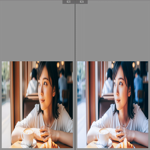このプリセットを使えば、AI生成画像や撮影写真を「Canon EOS R6 Mark IIらしい自然な発色と階調豊かな仕上がり」に整えることができます。ぜひお試しください。