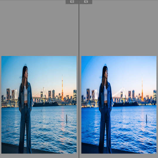プリセットを当てたあとに露光量・コントラスト・色温度などを微調整していただくと、より狙い通りのトーンに近づけることができます。