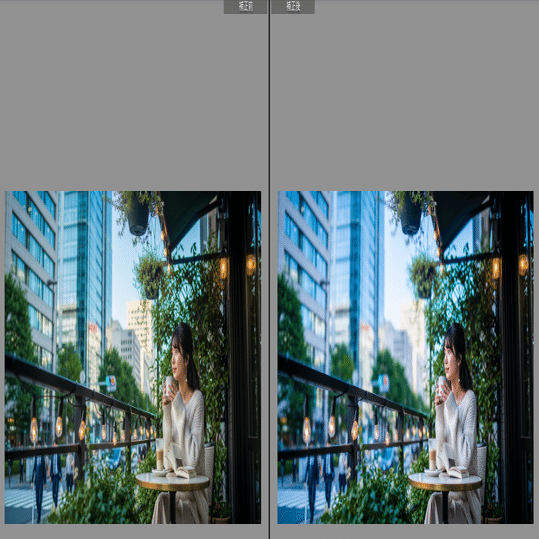 撮って出しにもう一歩だけ雰囲気をプラスしたいときや、AI 画像を「写真っぽく」見せたいときに使いやすいプリセットです。