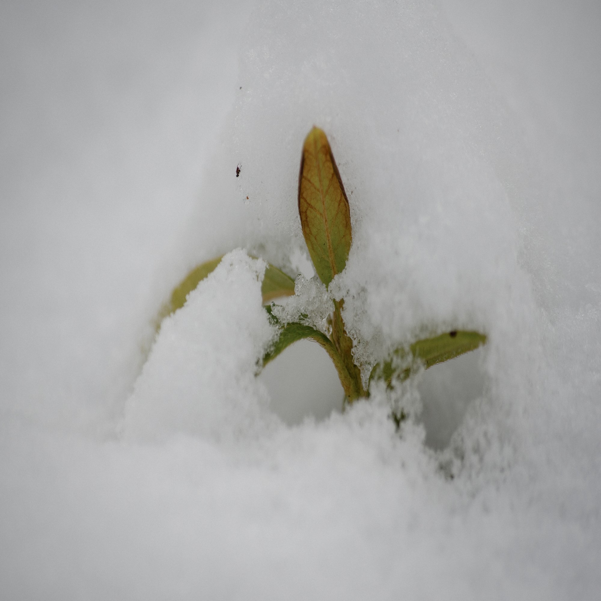 - 雪の中から覗く小さな生命を、静かに浮かび上がらせる