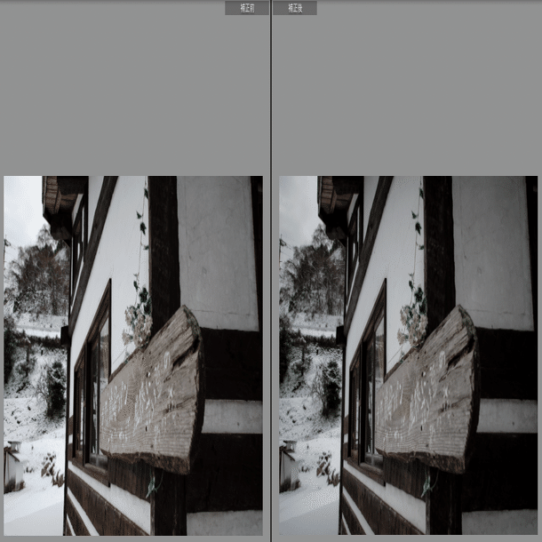 - 木材の質感と雪景色を両立させた階調設計