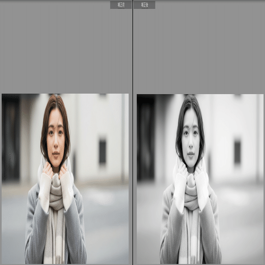 黒を少し持ち上げ、ハイライトを抑えた“クラシックライカ”風トーン。