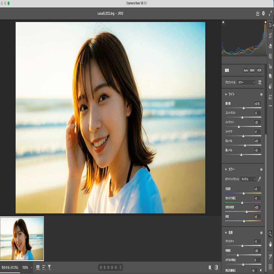 1. その後、露光量・ホワイトバランス・トリミングなどを好みに合わせて微調整してください。