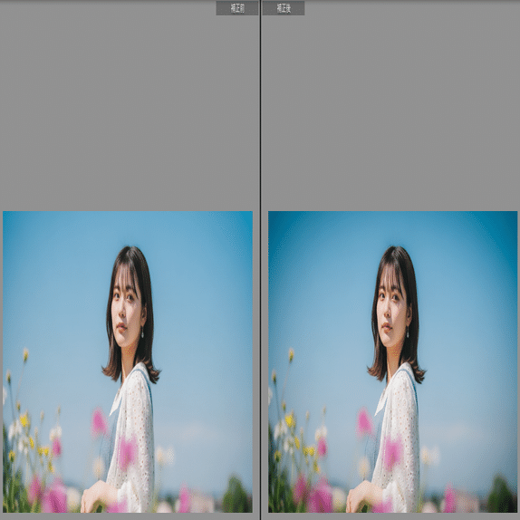 - 技術仕様: 明瞭度(Clarity)をマイナスに振りつつ、シャープネスのマスク処理を強めることで、芯がありながらも柔らかい描写を実現。周辺減光は強めです。