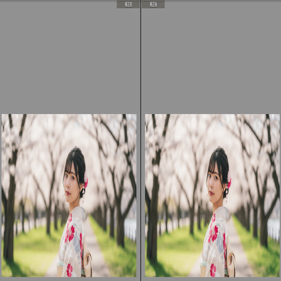 - 技術仕様: 多くのカメラで黄色く転びがちな春の光に対し、Tint(色かぶり補正)をわずかにマゼンタへシフト。葉の緑が肌色に干渉しないようHSLで分離させています。