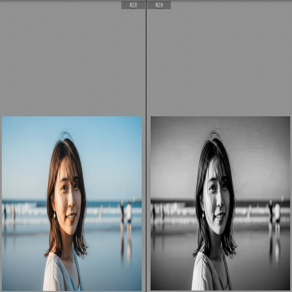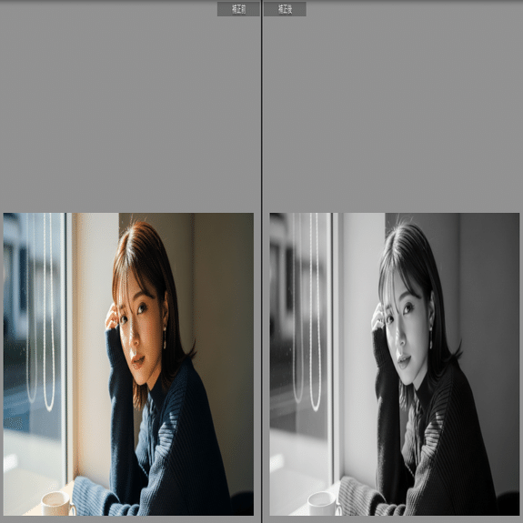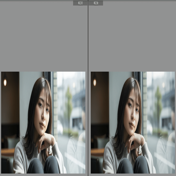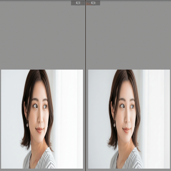 ここでは、実際の写真(撮って出し)と、プリセット適用後の変化を比較します。特に**「肌の質感」と「背景の沈み込み」**にご注目ください。
