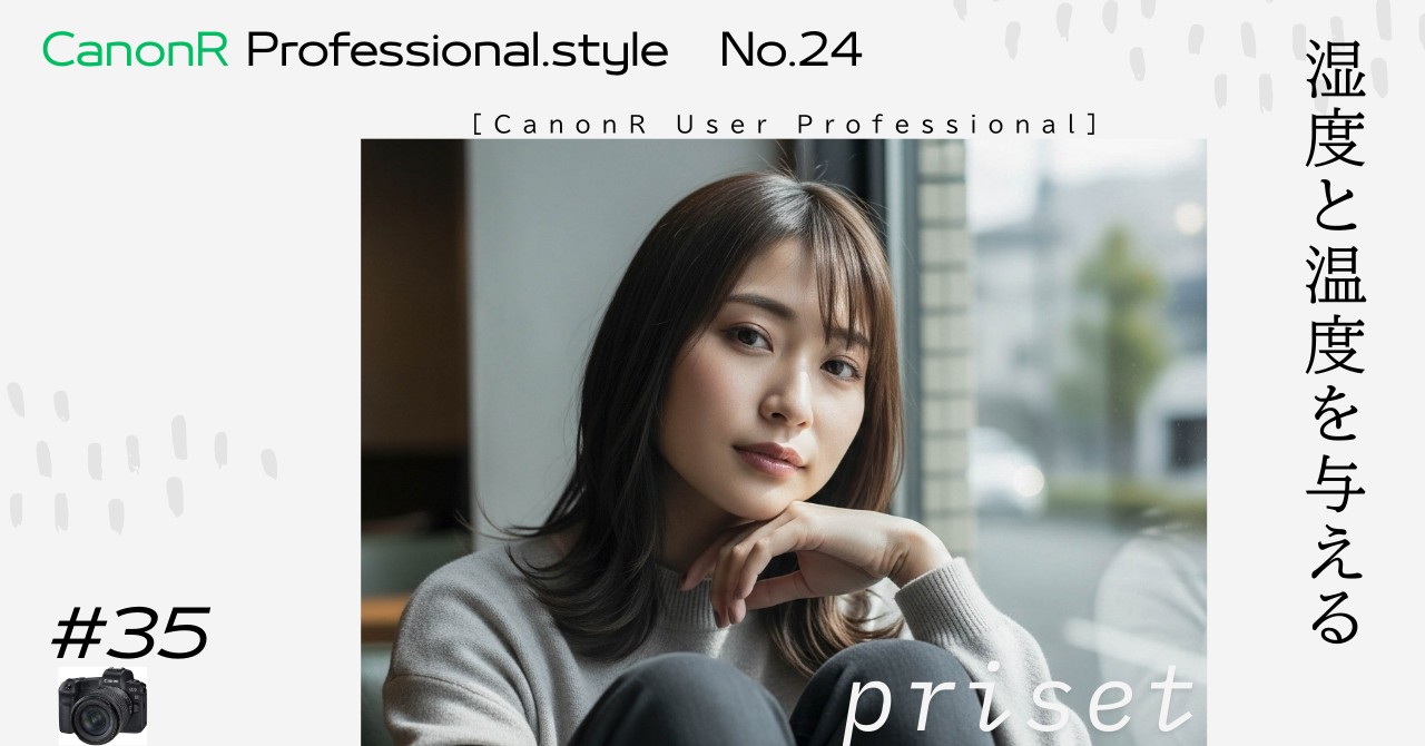 今回リリースする**『Canon Pro Depth Collection』は、流行りの「フィルム風(粒子強め)」ではありません。Canon Rシリーズの高画質を活かしたまま、光と影のコントロールだけで「湿度」と「奥行き」**を与える、完全プロ仕様のツールです。