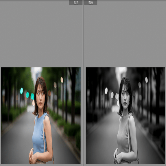 粗い粒子を乗せた、高感度フィルム(トライXなど)のようなラフな質感。ピントが合っていなくても「味」になる、夜のスナップ専用の「ドンシャリ」モノクロです。