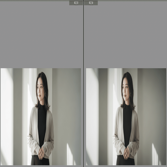 - 解決策: 明瞭度やテクスチャをあえてマイナスに振ったり、トーンカーブで中間調を持ち上げつつ黒レベルをマットにする(フェードをかける)ことで、フィルムのような「柔らかさ」や「有機的な質感」を与えることができます。